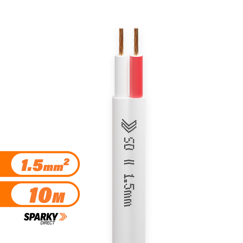 1.5mm Twin Flat Red & White Cable 10mtr Cut | 7-050-2RW-10mtrs