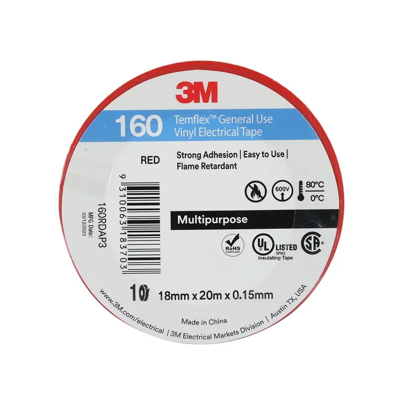 Learn more by watching our 3M 3M160-RD | Vinyl Electrical Insulation Tape Red 18mm x 0.15mm x 20m | Single Buy video.