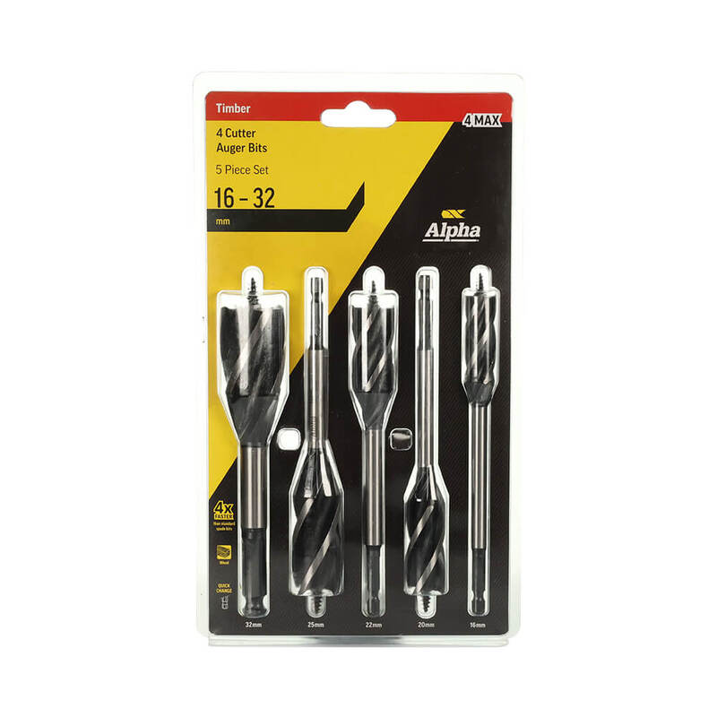 5 Piece 4 Cutter Auger Bit 16, 22, 20, 25, 32mm | 4MAX | TurboBore TS4C-SET5