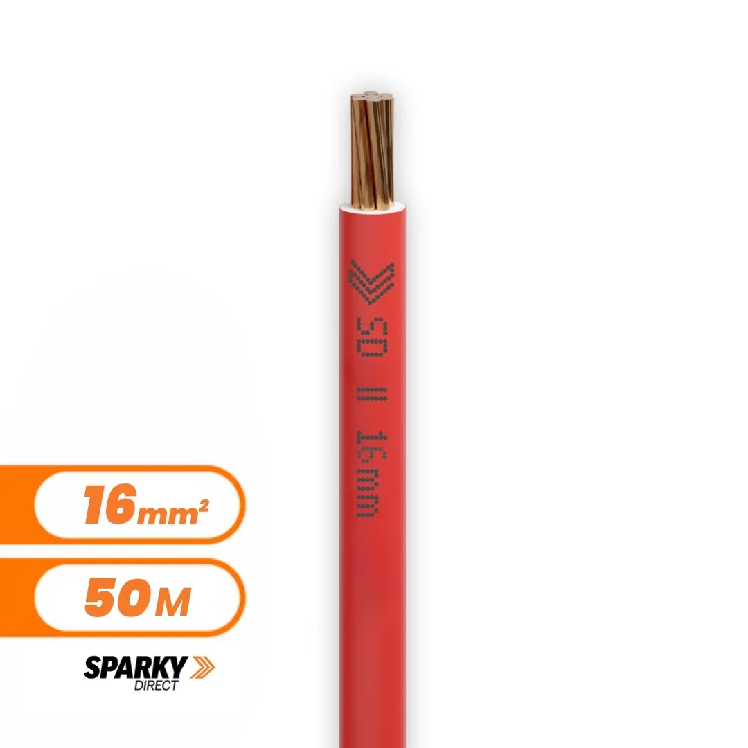 The 16BW-R50 is a 16mm² single-core red building wire, supplied in a 50 metre cut — perfect when you’ve got a big job but don’t quite need a full 100m roll. It’s commonly used in fixed wiring applications like submains, distribution boards, and high-load power circuits across residential, commercial, and industrial sites.