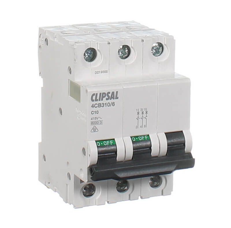 Clipsal 4CB310-6 10 amp 3 pole circuit breaker protects and controls circuits against overloads and short circuits. The 4 series range of circuit protection suits residential, commercial or industrial switchboard requirements.