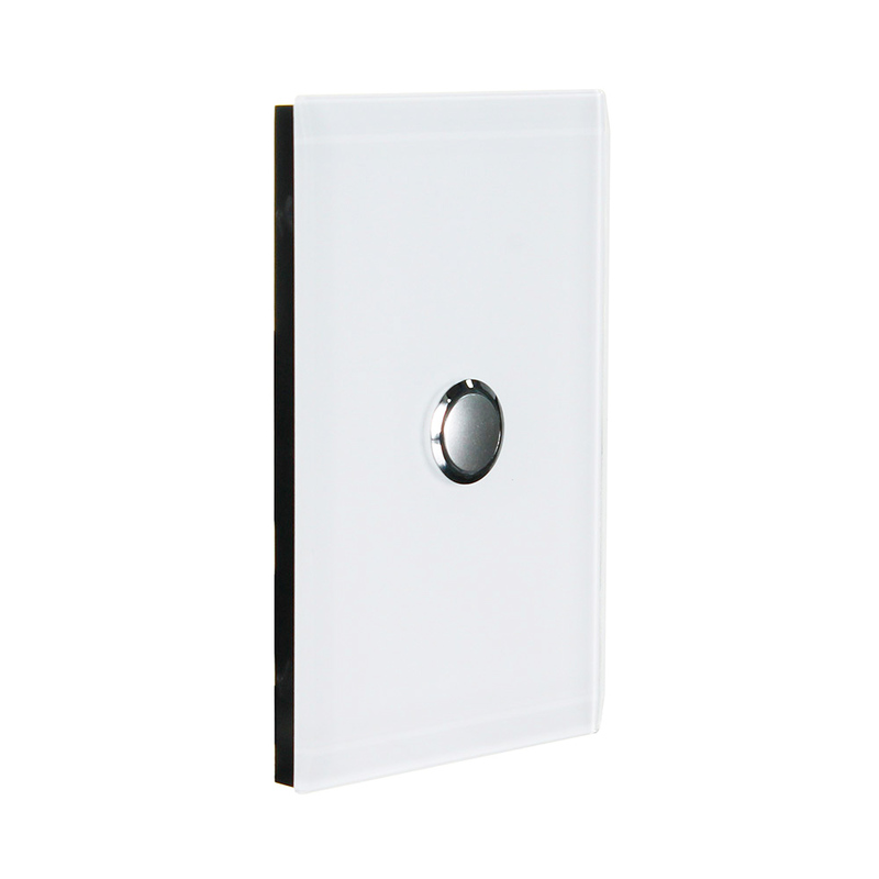 The Pure white switch has an elegant glass-look finish with a soft blue LED
