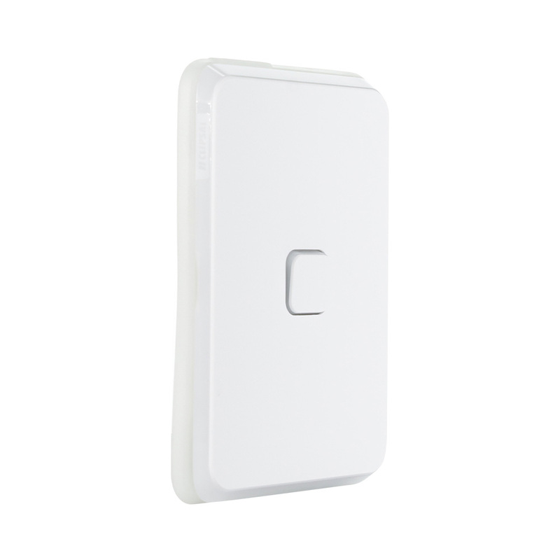 This 1-gang switch has an IP rating of IP44. It is excellent for wet areas such as kitchens, Laundries, outside/exterior