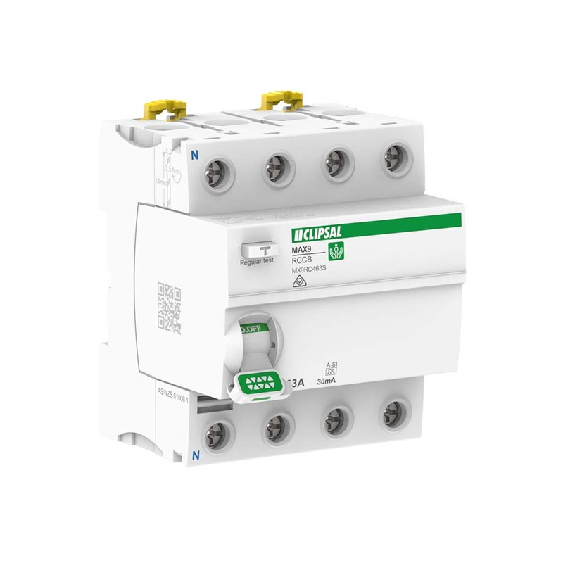 The Clipsal MX9RC463S MAX9 product is a residual current circuit breaker (RCCB)..