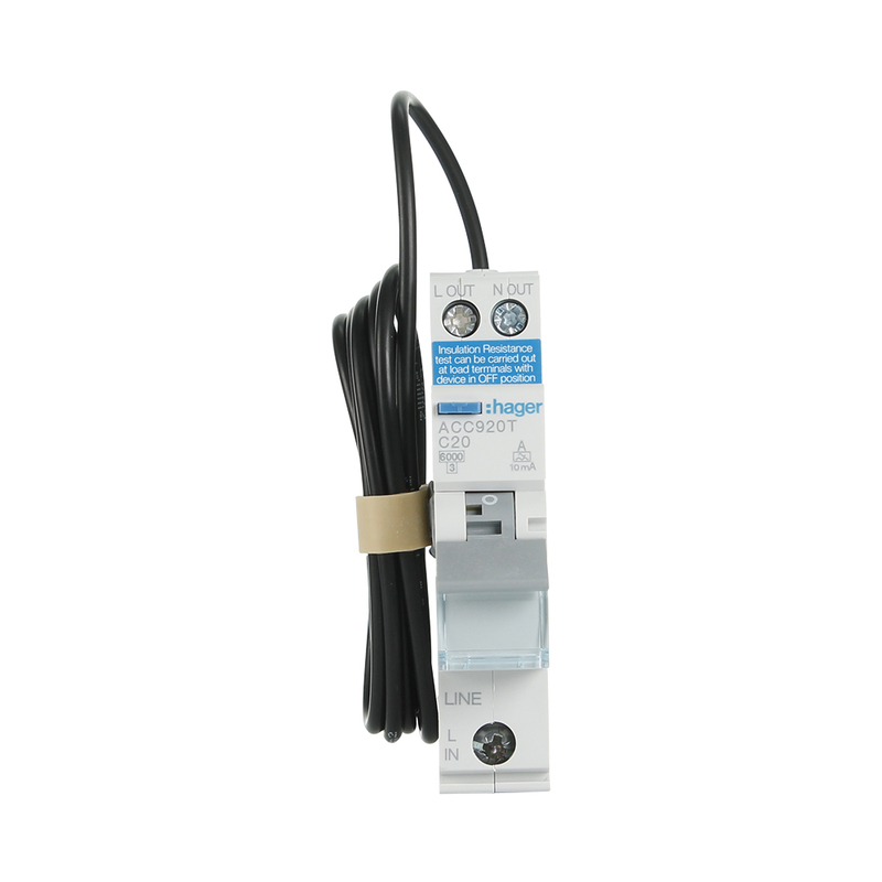 The Hager ACC920T is a C Curve 1 Pole + Neutral RCBO that protects and controls power and lighting circuits. The ACC920T RCBO is rated at 6kA and is suitable for commercial and industrial applications.