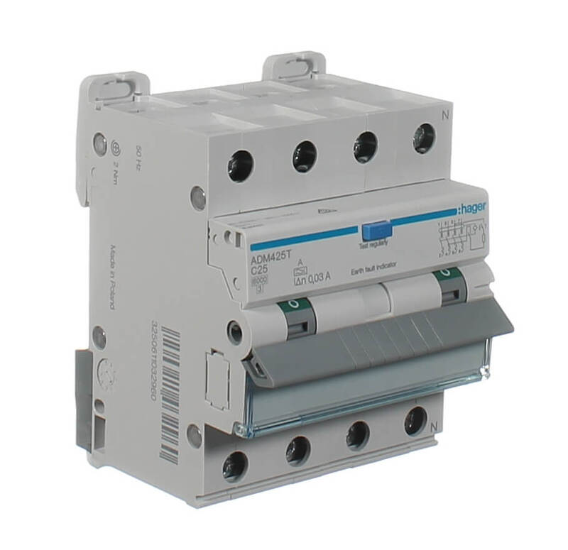 HAGER ADM425T | 25 Amp 4 Pole 6kA | 30mA RCD/MCB Combo