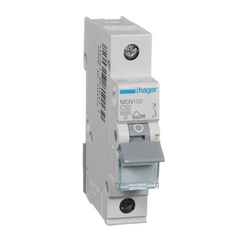 HAGER MSN150 | 50Amp Single Pole 6kA C-Curve Circuit Breaker