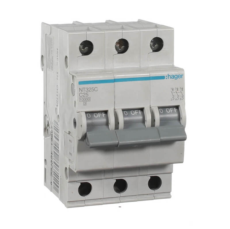 Learn more by watching our HAGER NT325C | 25 Amp Three Pole 10kA Circuit Breaker video.