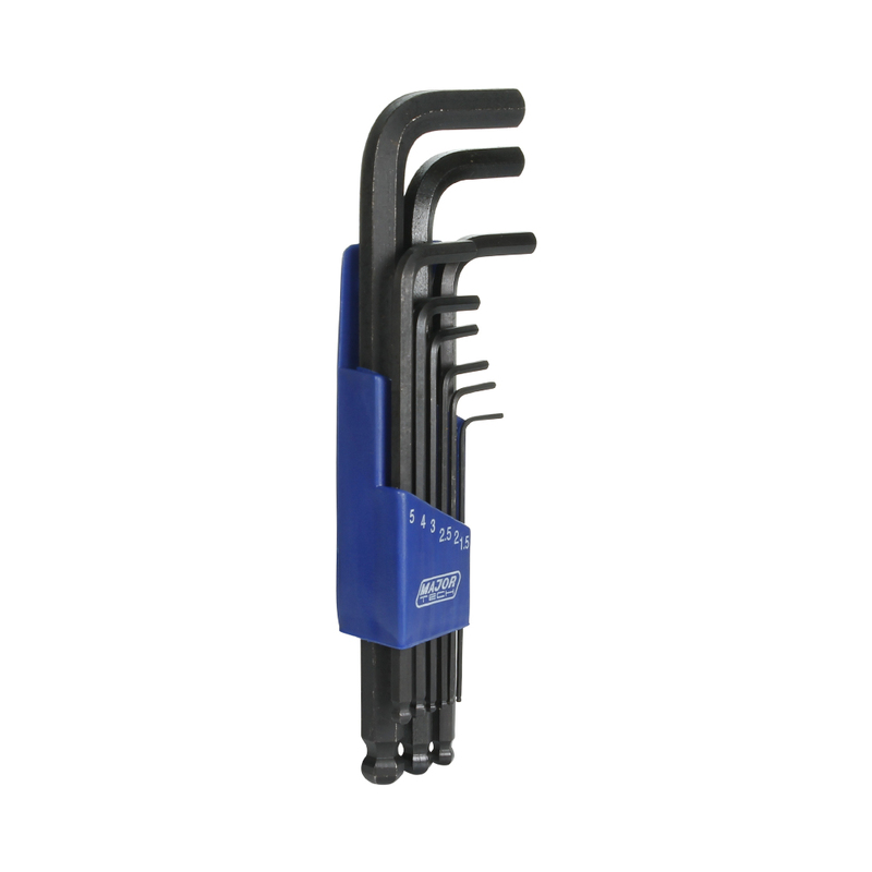 Major Tech Hex Key Sets are made of high quality steel and have long or extended arms to allow you to reach into small spaces for adjustments. They should have chamfered edges on the drive ends to allow them to be inserted easily and avoid stripping the fasteners. BPHK0308 have ball ends on one side, allow you to drive at an angle off-axis to the hardware, which can be helpful for tight places. Major Tech Hex Key Sets comes with an indexed storage caddy that allows you to keep you wrenches together, organized, and sized appropriately.