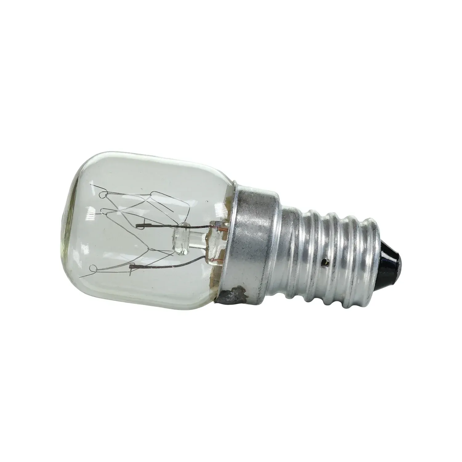 The NLS 10264 is a 15W clear oven lamp made for high-temperature environments. It features an E14 small Edison screw (SES) base and runs on 250V, making it a reliable replacement in both household and commercial ovens. Its compact size fits tight spaces where a small pilot lamp is needed.