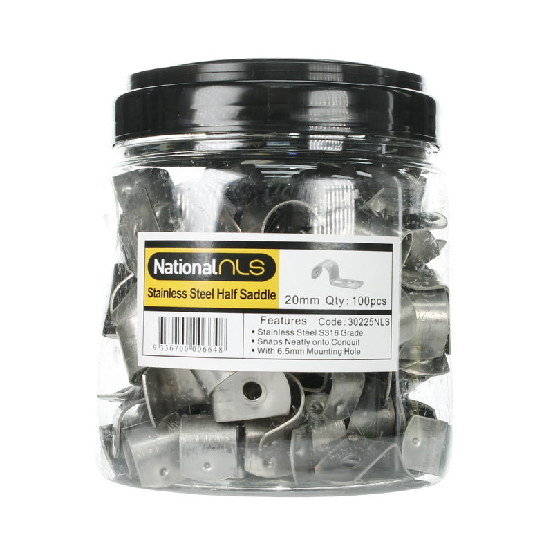 The half saddles are reinforced and will handle the toughest situations. Electricians use half saddles to mount conduit in switch rooms, mount conduit to power poles, on patios, timber and concrete walls.