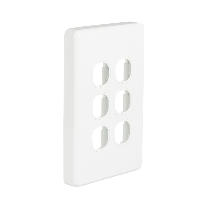The NLS 30606 is a 6-gang switch plate only, designed in the classic style and supplied with a white clip-on cover. It is the ideal option for installations that require six switches on a single plate.