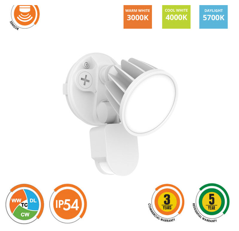 SES70801TC-WH | Stargem III Single 15W LED Floodlight Tri-Colour with PIR Sensor White