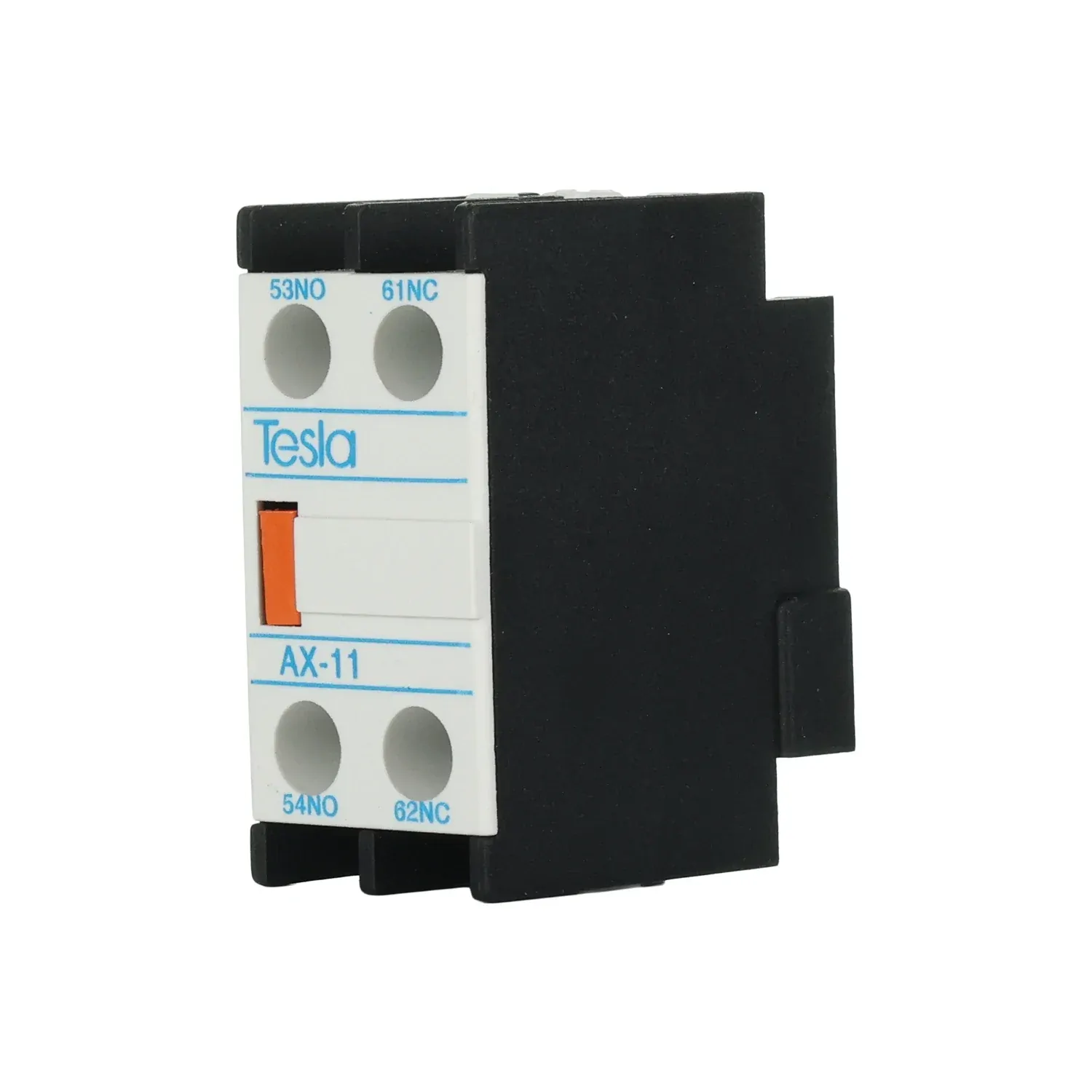 The Tesla AX11 is a clip-on auxiliary contact block featuring a 1NO + 1NC configuration, designed to expand the functionality of contactors and circuit breakers. It adds extra control and signalling points for greater system flexibility, making it a go-to accessory for interlocking, feedback, and automation tasks.