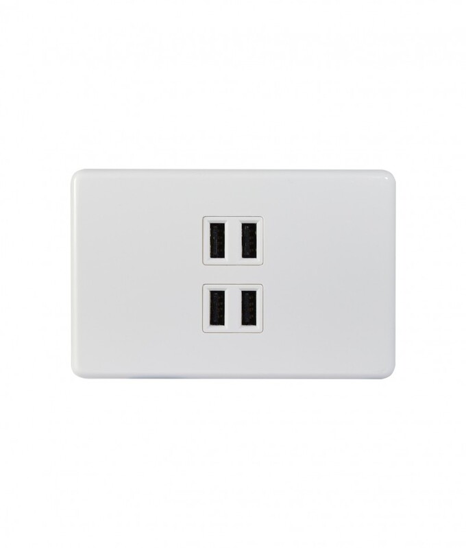 The Trader Puma PUUSB4G Fully Integrated Quad USB Charger Plate in white is used throughout Australia in domestic and commercial properties and fits standard Australian wall boxes and mounting accessories.