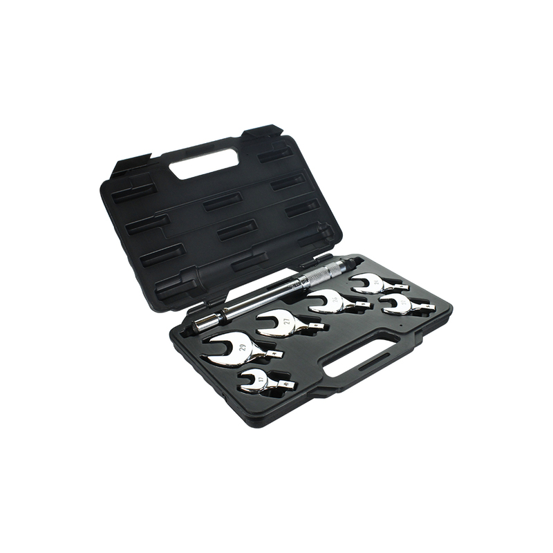 The ACD STW-07 Spanner Torque Wrench Set is an indispensable tool for precise mechanical work. This seven-piece set includes a torque wrench and six interchangeable spanner heads sized from 17mm to 29mm, designed to accommodate a variety of tasks. Each component is crafted from high-quality materials, ensuring durability and reliable performance. The set comes neatly organized in a robust blow moulded case, making storage and transport effortless.