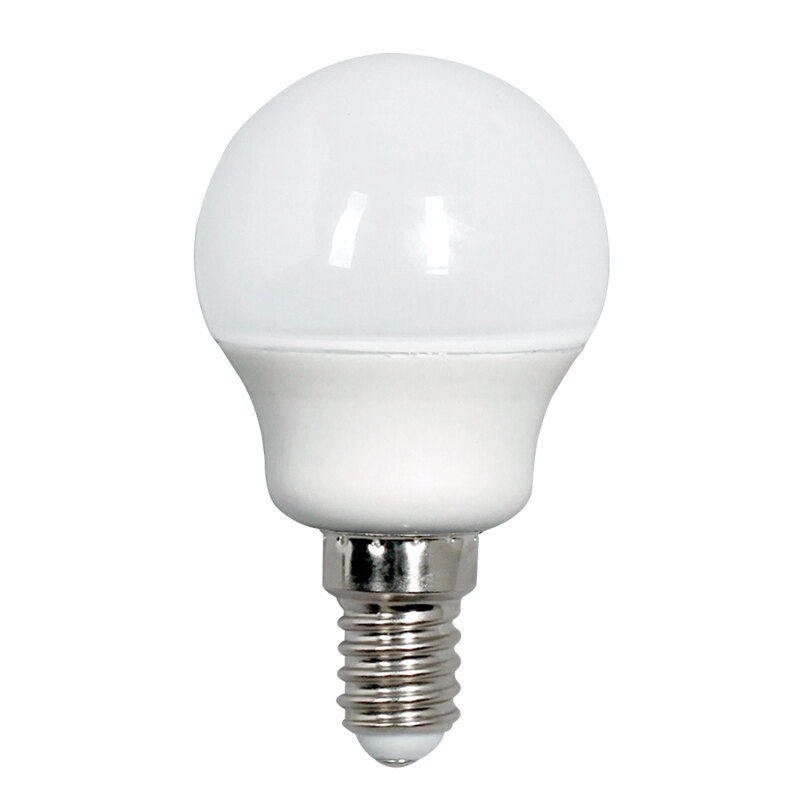 The Allume A-LED-42050440 is a 5W fancy round LED globe made to replace old 40W incandescent bulbs. It has an E14 small Edison screw base, making it a good fit for lamps, chandeliers, and decorative fittings.
