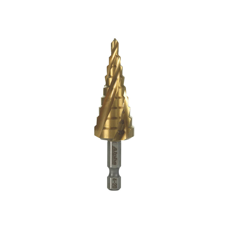 The Alpha C9STSFM4-20QR is a versatile step drill from the Gold Series, designed to meet the demands of tradesmen requiring precision and efficiency. This metric step drill, with dimensions spanning from 4mm to 20mm across 9 steps, is perfect for drilling through non-ferrous metals, sheet steel, plastic, and stainless steel up to 3mm thick. The tool's 4 flute spiral design and self-starting split point facilitate quick, clean, and accurate drilling without the need for a pilot hole.