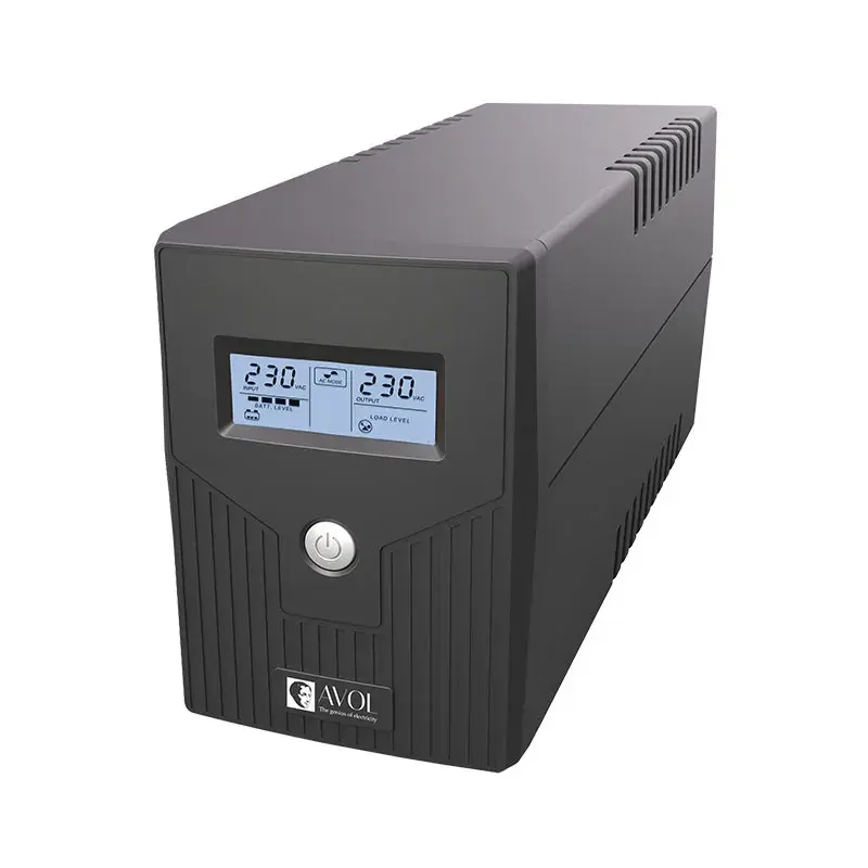 This UPS is equipped with boost and buck AVR for stable voltage, a simulated sinewave output, and a fast 2-6ms transfer time for continuous power delivery. The LCD display shows real-time power and battery levels, and the auto-restart function ensures seamless operation after power restoration. Compatible with multiple operating systems via USB interface, this UPS is versatile for various setups and locations.