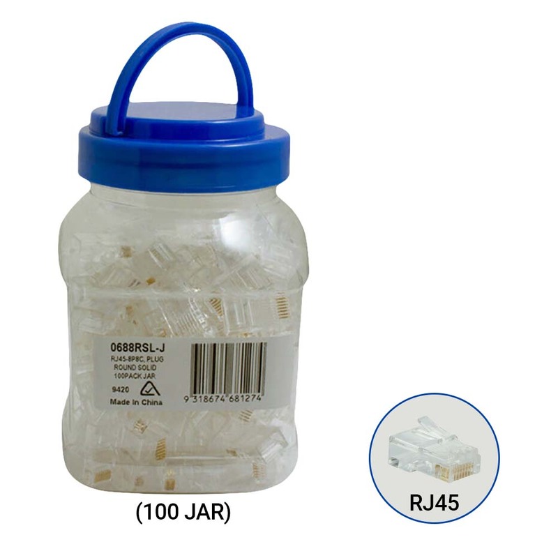 CABAC 0688RSL-J | RJ45 8 Way Data/Voice Connection Plug Round Solid Core | 100 Jar
