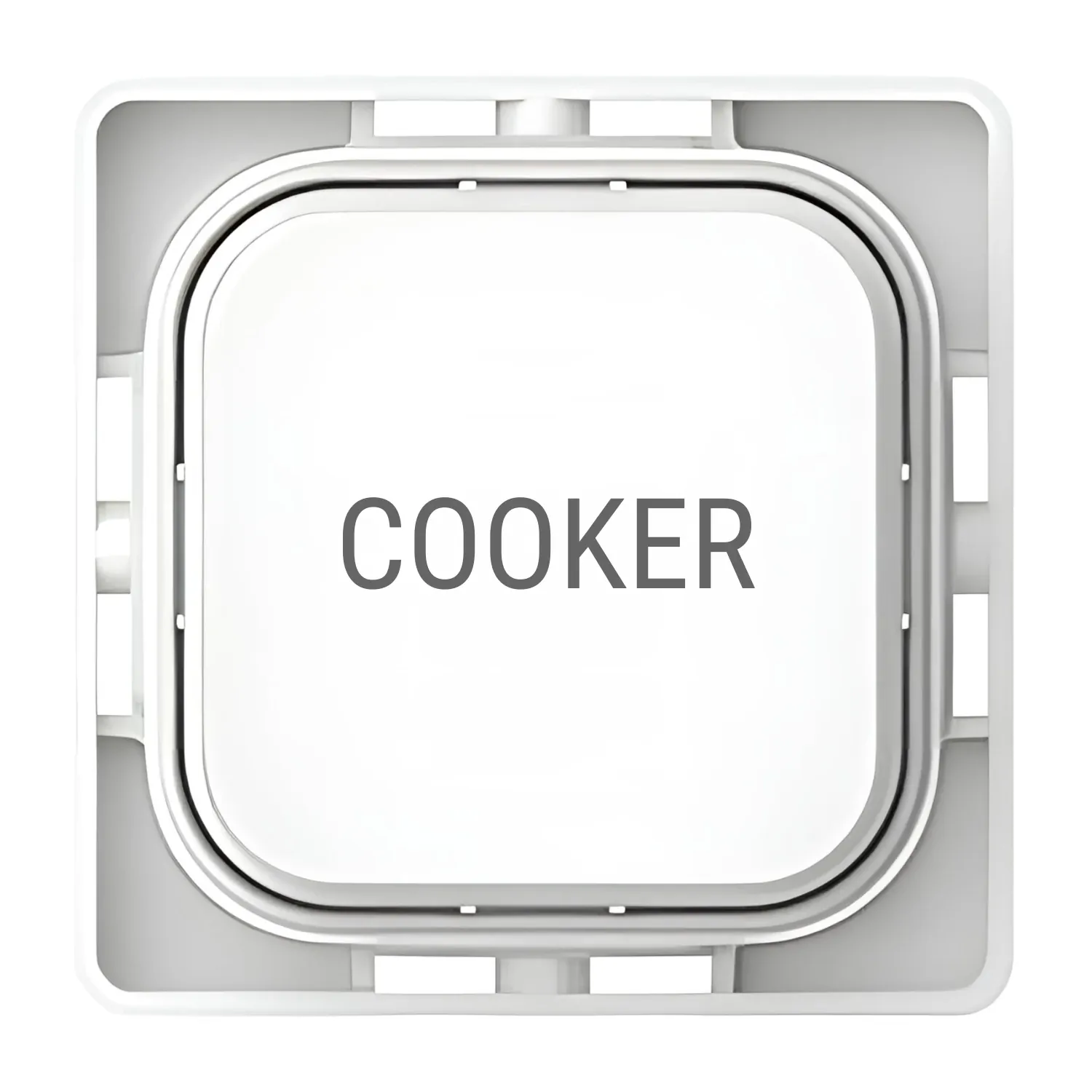 The Clipsal Iconic SD-COOKER-TEXT-PB-VW is a Custom Engraved Cooker text push button dolly designed in-house by Sparky Direct.