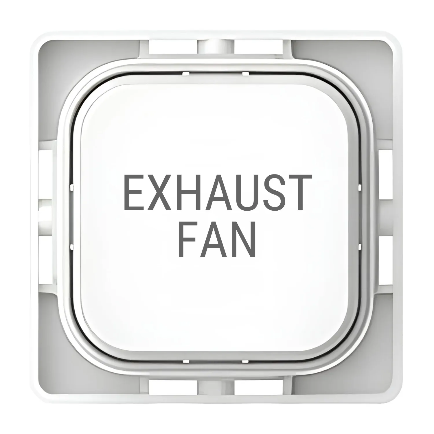 The Clipsal Iconic SD-EXHAUST-FAN-TEXT-PB-VW is a Custom Engraved Exhaust Fan text push button dolly designed in-house by Sparky Direct.