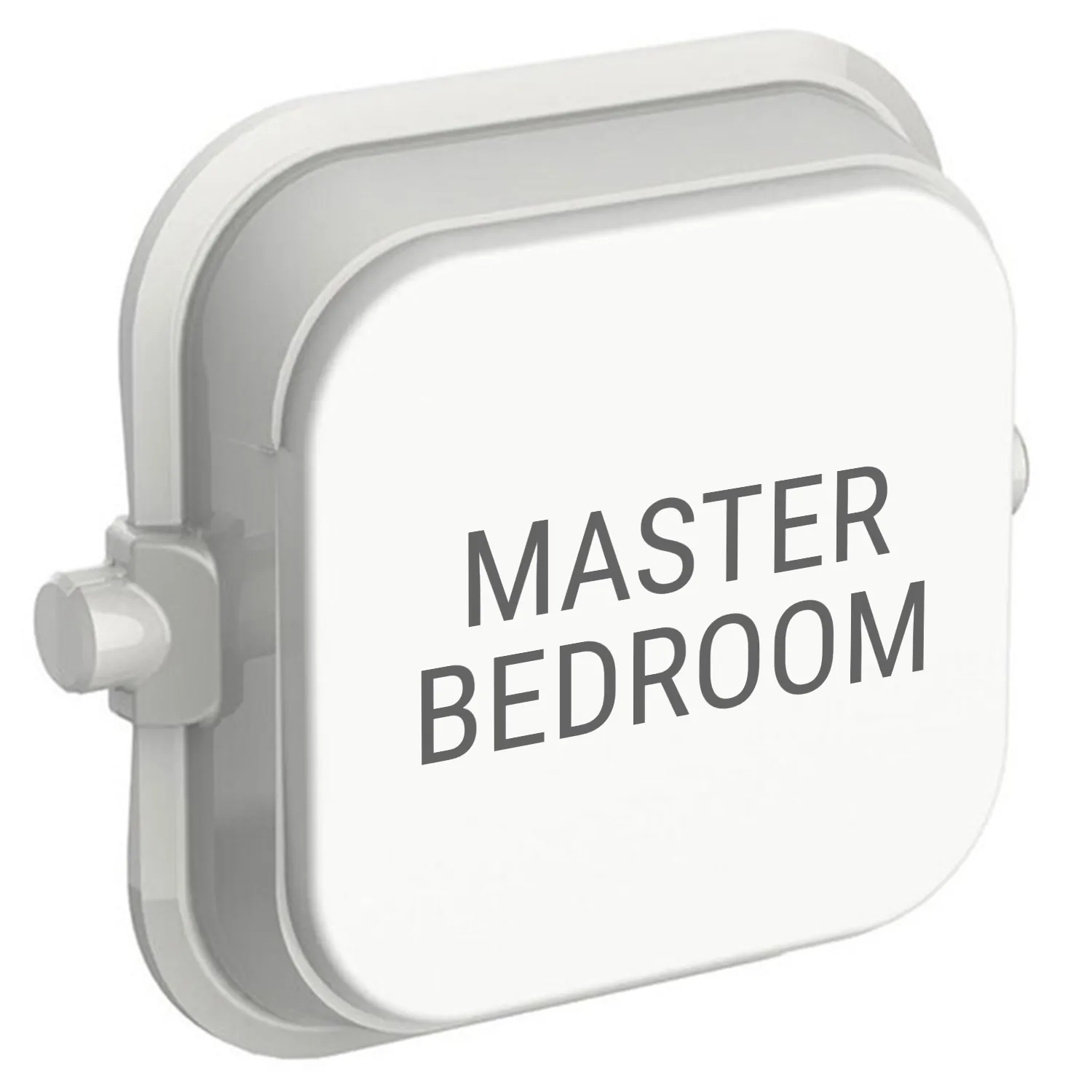 The Clipsal Iconic SD-MASTER-BEDROOM-TEXT-VW is a Custom Engraved Master Bedroom text dolly rocker designed in-house by Sparky Direct.