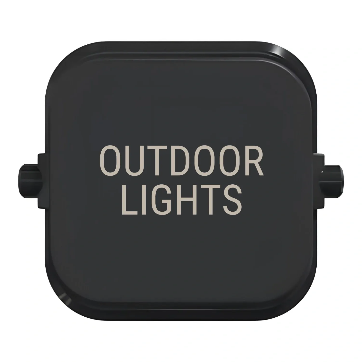 The Clipsal Iconic SD-OUTDOOR-LIGHTS-TEXT-XB is a Custom Engraved Outdoor Lights text dolly rocker designed in-house by Sparky Direct.