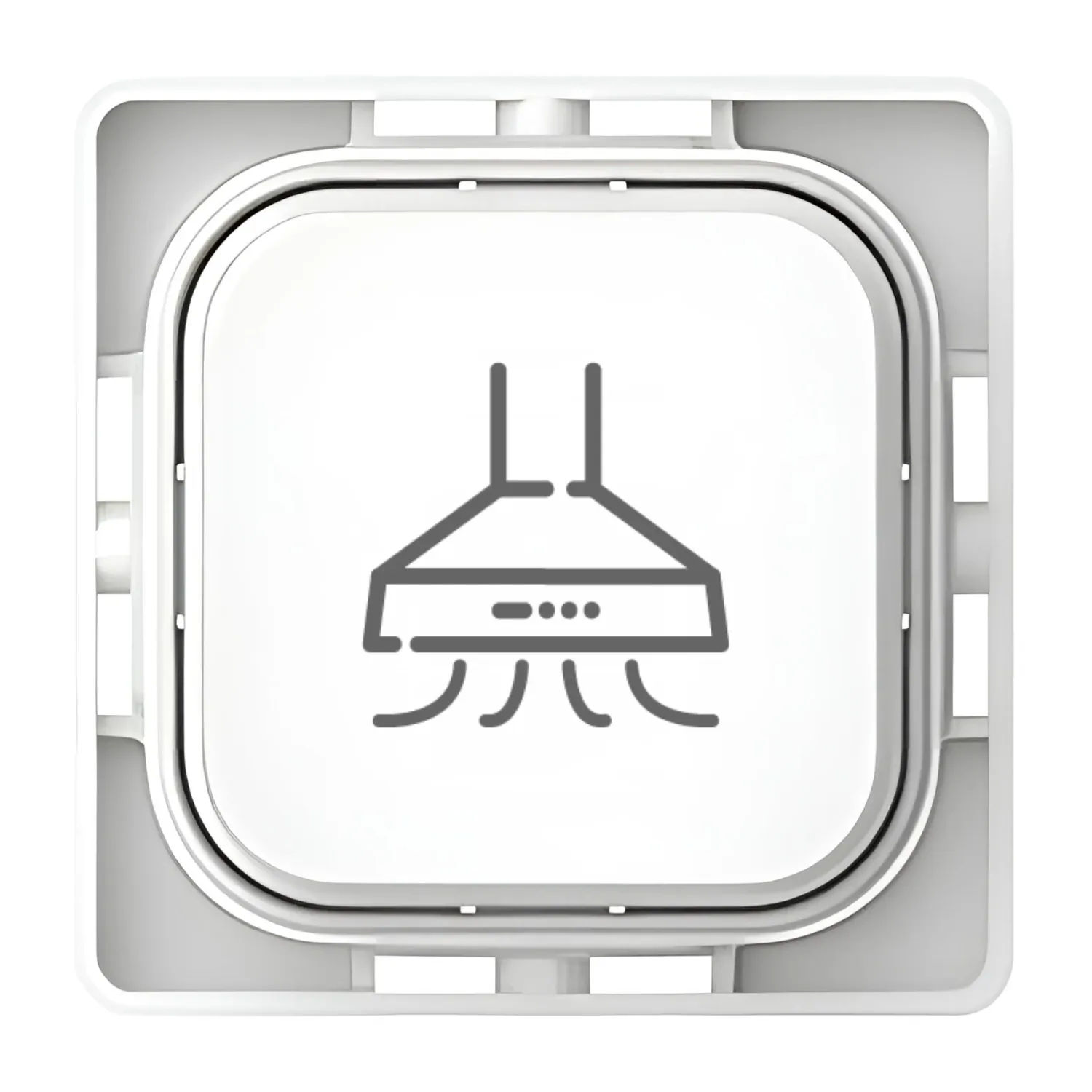 The Clipsal Iconic SD-Rangehood-PB-VW is a Custom Engraved Rangehood pictogram push button dolly designed in-house by Sparky Direct.