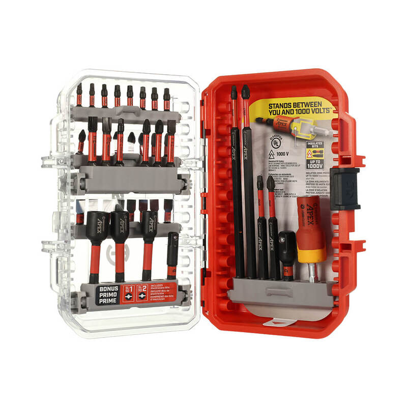 The Crescent CAESET-40 eSHOK-GUARD™ 40 Piece Set offers high performance and robust safety for professionals in electrical environments. Featuring Crescent’s patented eSHOK-GUARD™ tech, this set provides insulation up to 1000V, delivering protection when working near live wires. It includes a variety of Phillips®, Slotted, Square, and Slotted Square bits, all crafted with optimised tip geometry for improved fastener retention and reduced cam-out.