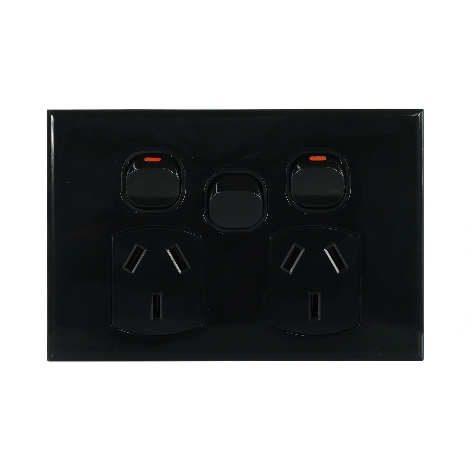 The CSG POD10XB-L is a 10A double power point with an extra switch, designed in the GEO slimline style with a sleek 6.5mm black finish. Perfect for bathrooms, kitchens, or laundries, the additional switch lets you control a separate appliance—like a fan or light—from the same plate.