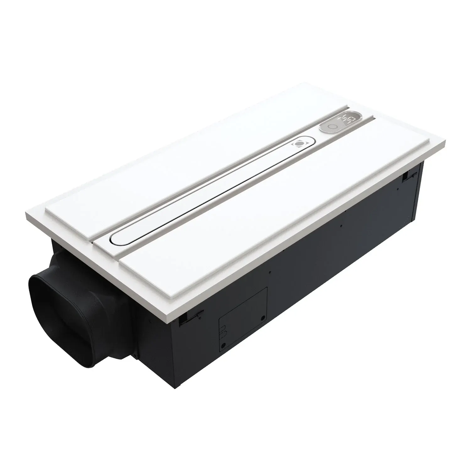Powered by a 2150W ceramic PTC element, the AIRSWAY outputs up to 500m³/hr extraction and features a 25W Tri-CCT LED light offering up to 2150 lumens. The included digital wall controller displays ambient temperature and has illuminated icons for each mode, plus an “All-Off” function and auto shut-off after two hours of use.
