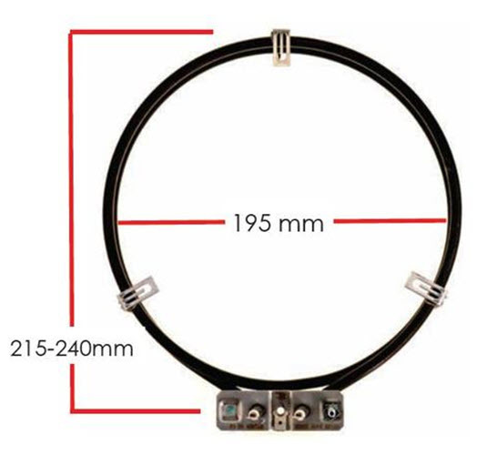 2100Watt, 240Volt. Element dimensions - 19.5cm diameter, overall depth 25 mm from front to mounting bracket.