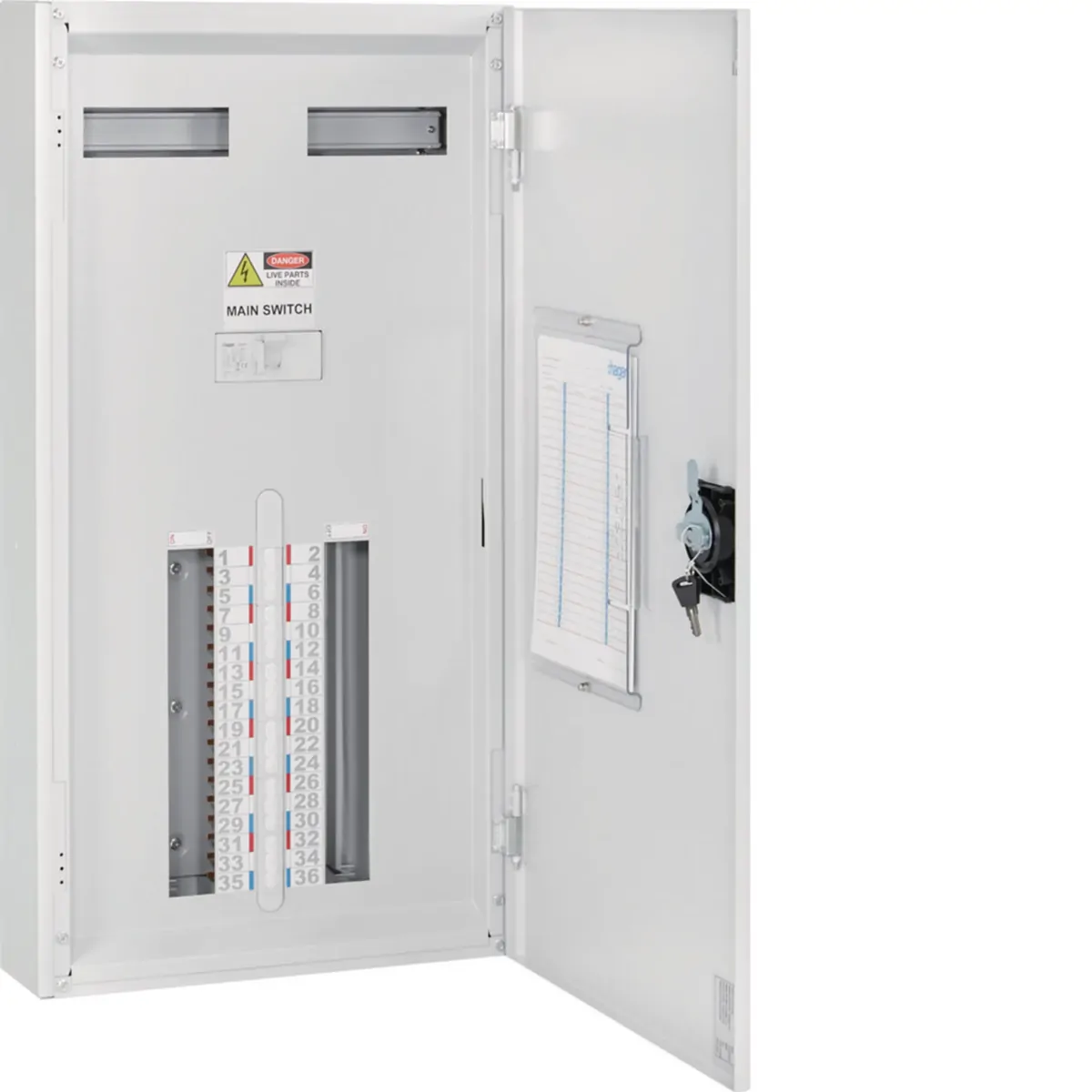 A: It includes a door with a keylock mechanism, providing secure and controlled access to the panelboard's contents.
