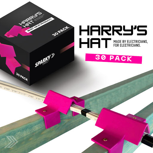 The Harry's Hat HHV001-30 is a mechanical cable protection hat designed for use in ceiling spaces. Constructed from durable, non-conductive Polypropylene, it supports up to 150kg and provides safe, compliant protection for electrical cables.