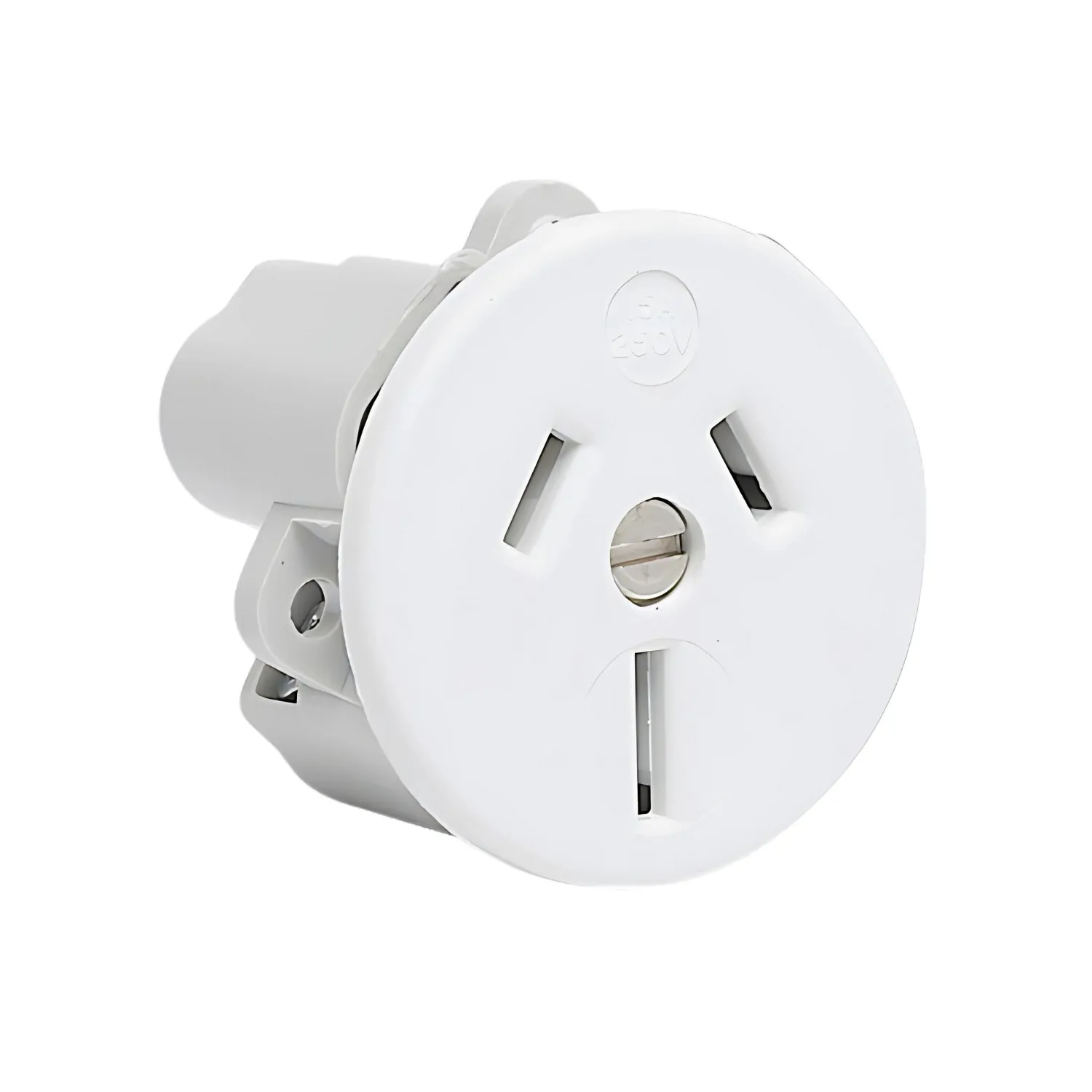 With a 38mm diameter and 25mm depth, this white plug base fits neatly into panels where space is limited. Its durable construction supports consistent performance in fixed electrical installations.