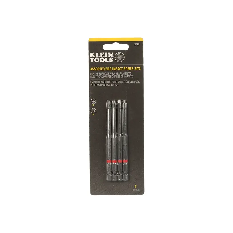 Learn more by watching our Klein Tools 32795 | Pro Impact Bits Extra Length Assorted 4 Pack | 102mm Bits video.