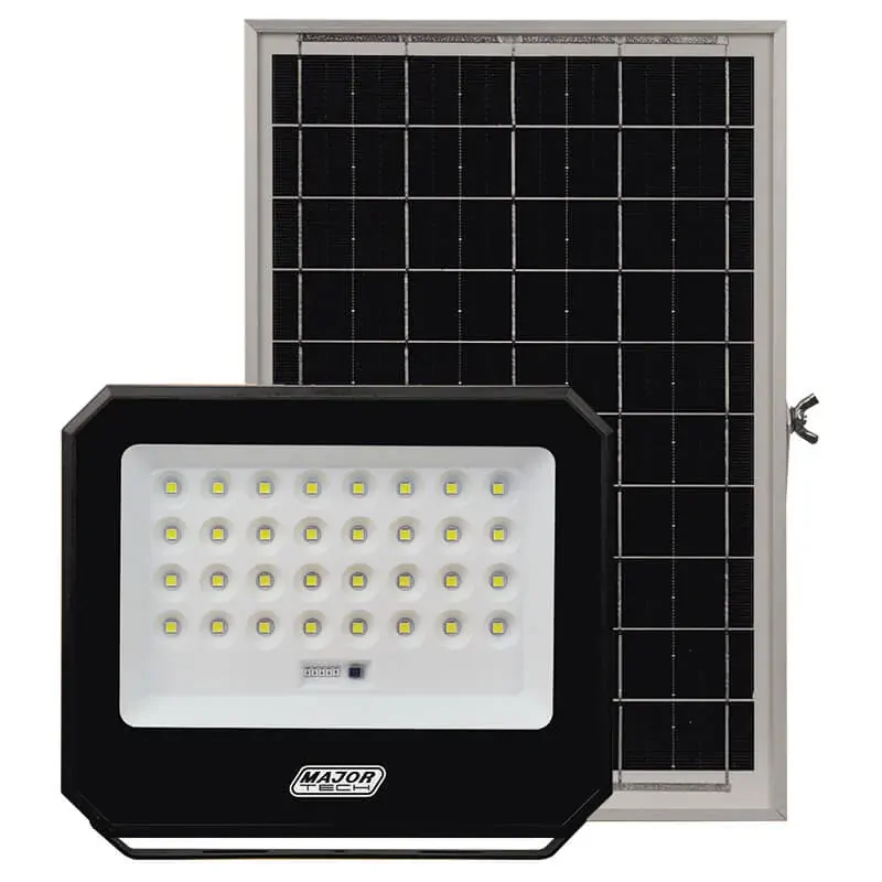 The Major Tech SFQ-150C is a 15W solar-powered LED floodlight delivering 2,000 lumens of bright 6000K cool white light. Built with SMD2835 LED chips and a spherical diffuser design, it provides a wide 90° beam angle and even light distribution. The IP65-rated die-cast aluminium housing ensures durability in harsh outdoor conditions.