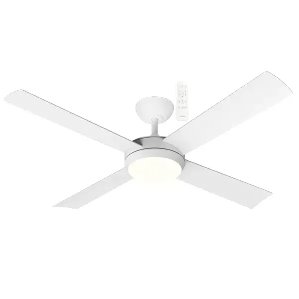 An integrated 24W LED light provides dimming and adjustable colour temperature from 2700K to 6000K. The remote control handles all functions, including six speeds, reverse mode, breeze mode, sleep mode, and a 1, 4, or 8-hour timer.