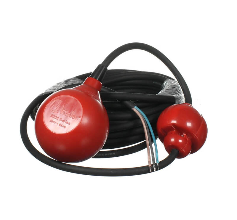 The Matelec FSW-12551 is a 9006 series liquid float switch featuring a 50 metre neoprene cable, built for long-range and deep tank level control in electrical, industrial, and water management systems. Designed for normally open or normally closed switching, it uses a microswitch that activates at a 25° angle from horizontal.
