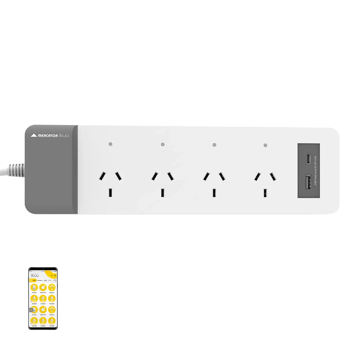 Take control of your power with the Mercator Ikuü SPB04U, a smart Wi-Fi power board designed to make life easier. It’s got four power sockets, one USB-C, and one USB-A port (totaling 4.2A), all managed from your phone—no extra hub needed.