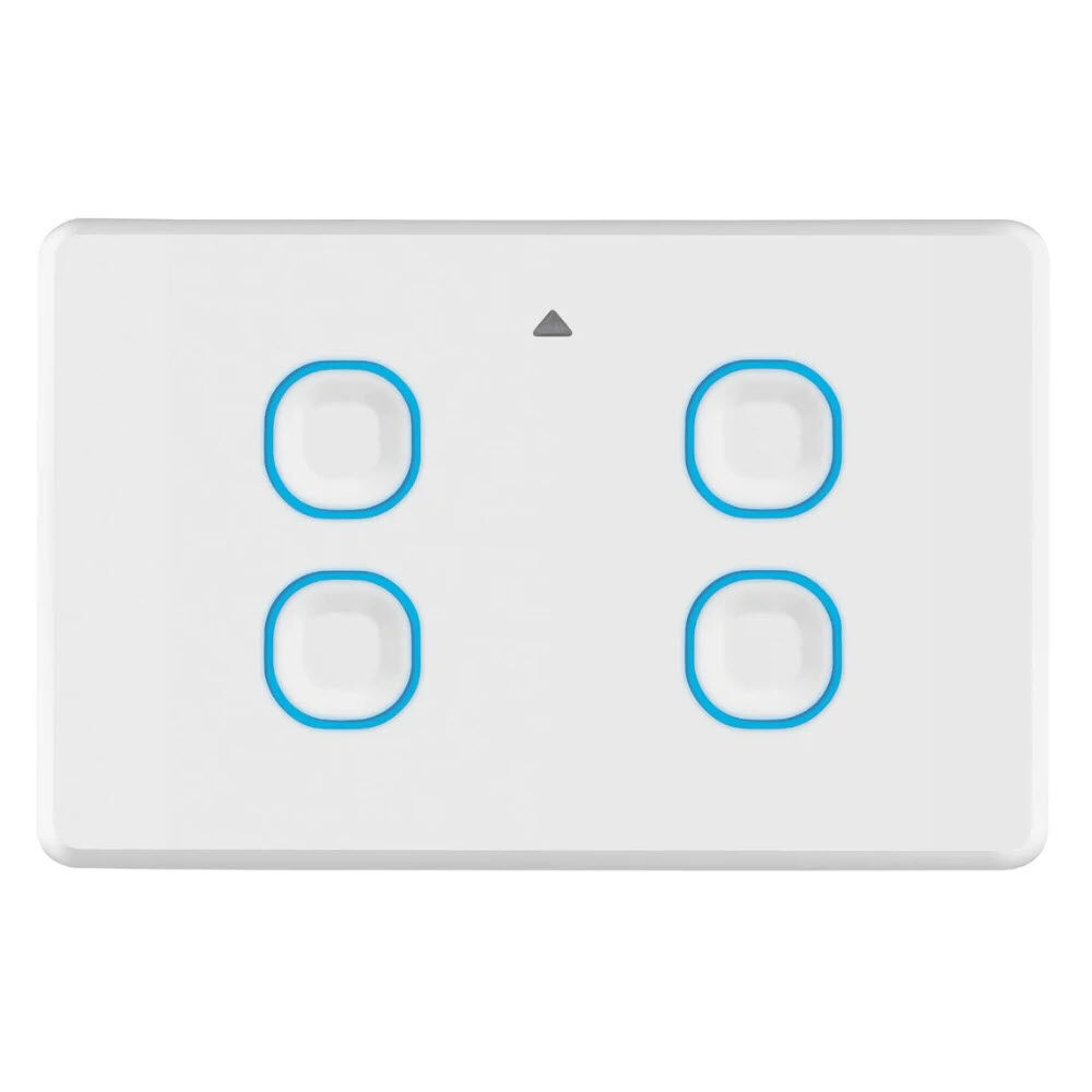 The Mercator Ikuu SSW04GN-ZB is a smart Quad Gang light switch designed for Zigbee 3.0 networks. It requires a neutral wire for installation and features touch-sensitive capacitive switches for smooth operation. A blue backlight indicator provides clear status visibility. Made from UV-resistant white polycarbonate, this switch fits standard mounting brackets and includes combination head screws for secure installation.