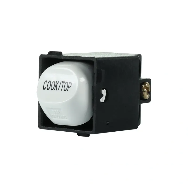 The NLS NLS35COOKTOP switch mechanism is labelled COOK/TOP for clear identification. Rated at 35 Amp, this single pole switch is designed for reliable control of cooktop circuits.