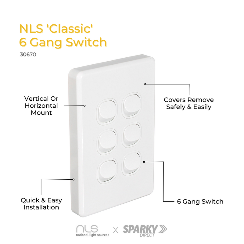 Learn more by watching our NLS 30670 | 6 Gang Switch 10 Amp | Classic Style | White video.