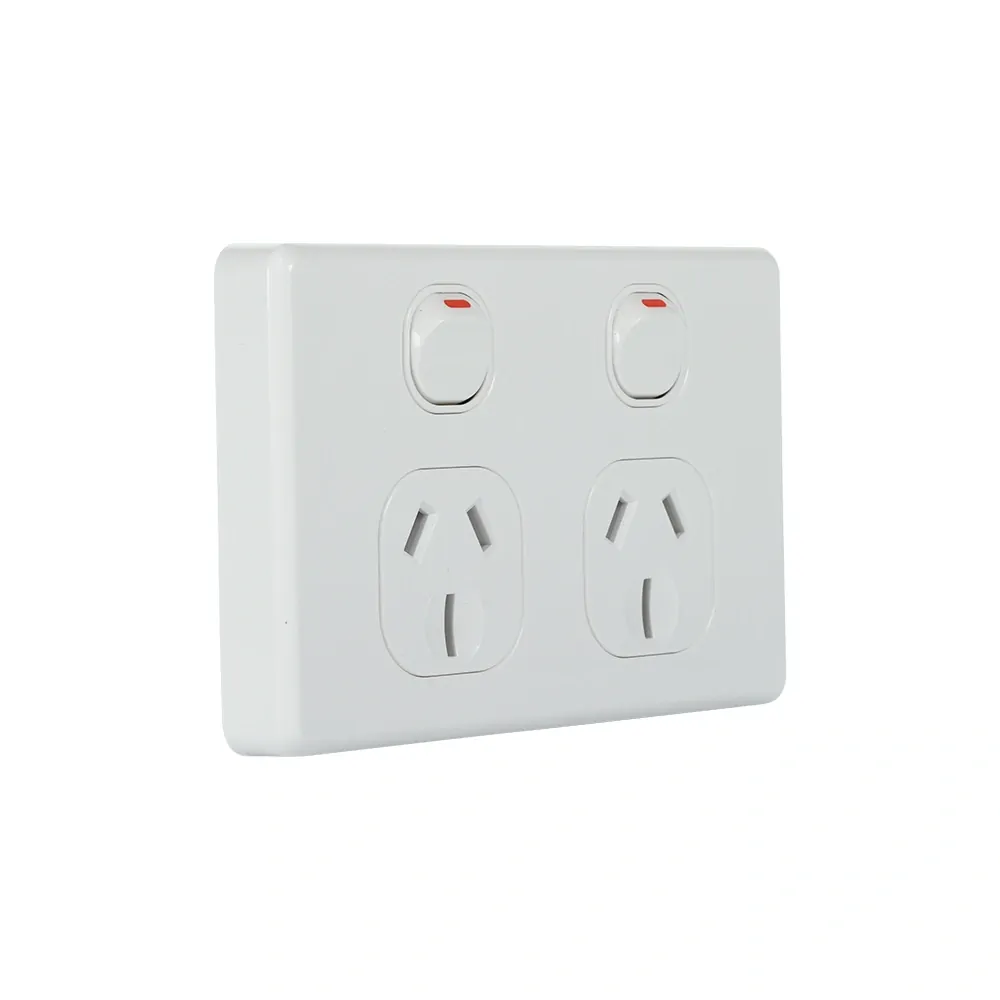 The NLS 30728 Double Pole Double Power Point 15A is designed for heavier-duty applications. Rated at 250V AC, it provides two outlets with the added safety of double pole switching, making it suitable for areas where secure disconnection of both active and neutral is required.