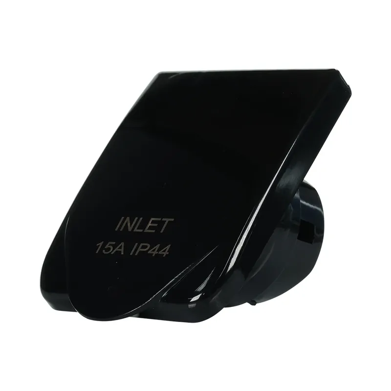 Its compact black design offers a discreet appearance while maintaining durable performance. This inlet suits general-purpose outdoor power requirements where a secure 15A supply is needed.
