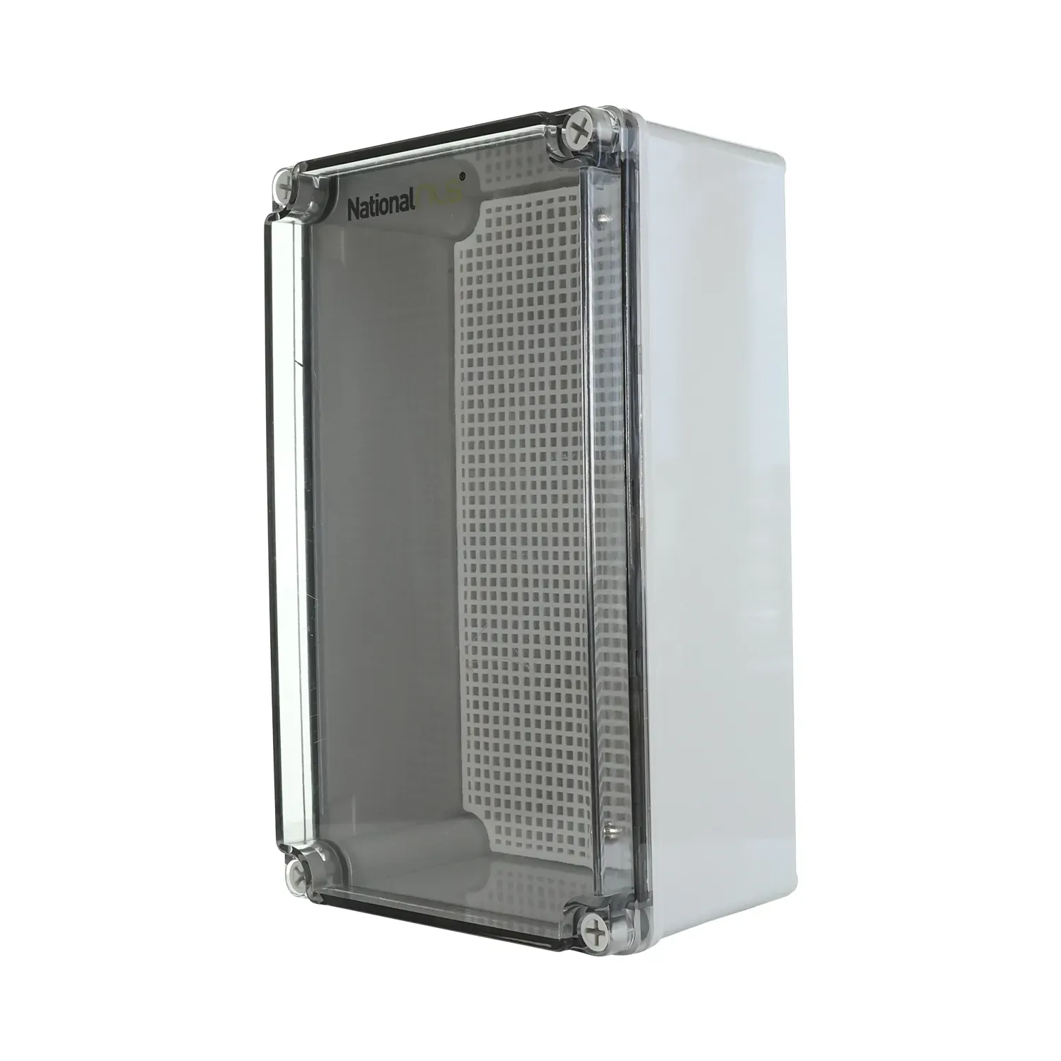 A transparent lid allows quick visual inspection of internal components without opening the enclosure, while the durable housing ensures reliable protection against dust and water ingress.