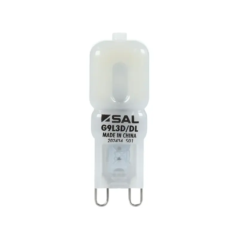 The SAL G9L3D-DL LED Opal Lamp is a highly efficient 2.5W lamp designed for feature lighting applications. With a 6000K daylight colour temperature, this G9 base lamp delivers 220 lumens of bright, natural light, making it perfect for spaces that require crisp and clear illumination. Its opal polycarbonate body ensures even light distribution, while the 320° beam angle provides wide coverage.