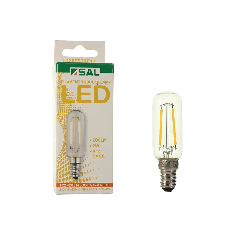 SAL LT25F830E14 | Clear Tubular Lamp 2W 3000K | E14 | Warm White