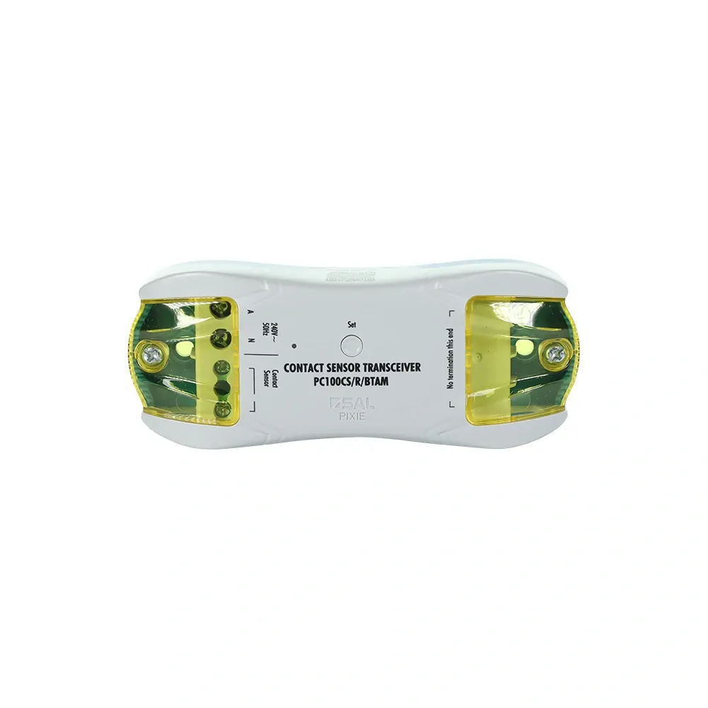 The SAL PC100CS-R-BTAM PIXIE Contact Sensor Transceiver is a versatile and essential tool for home automation. Designed to connect with one contact sensor or reed switch (sold separately), this device allows you to monitor the live status of doors and windows. It can trigger events within the PIXIE system and integrate with third-party systems for broader applications.